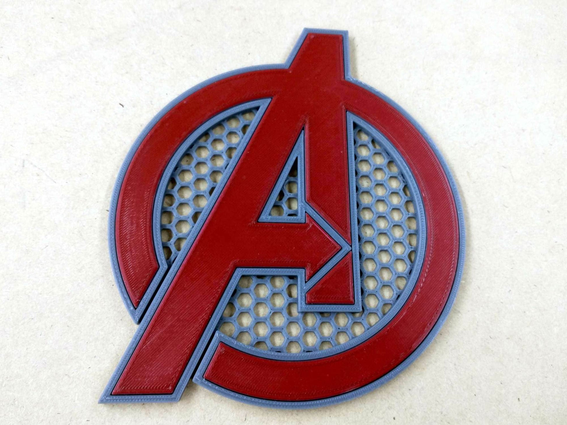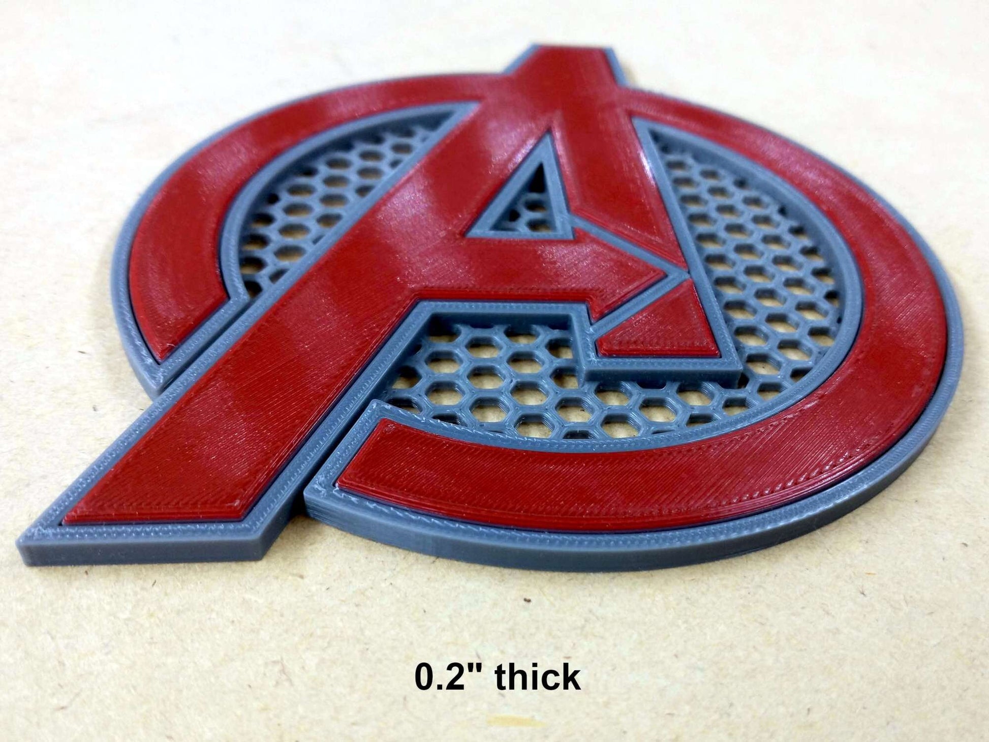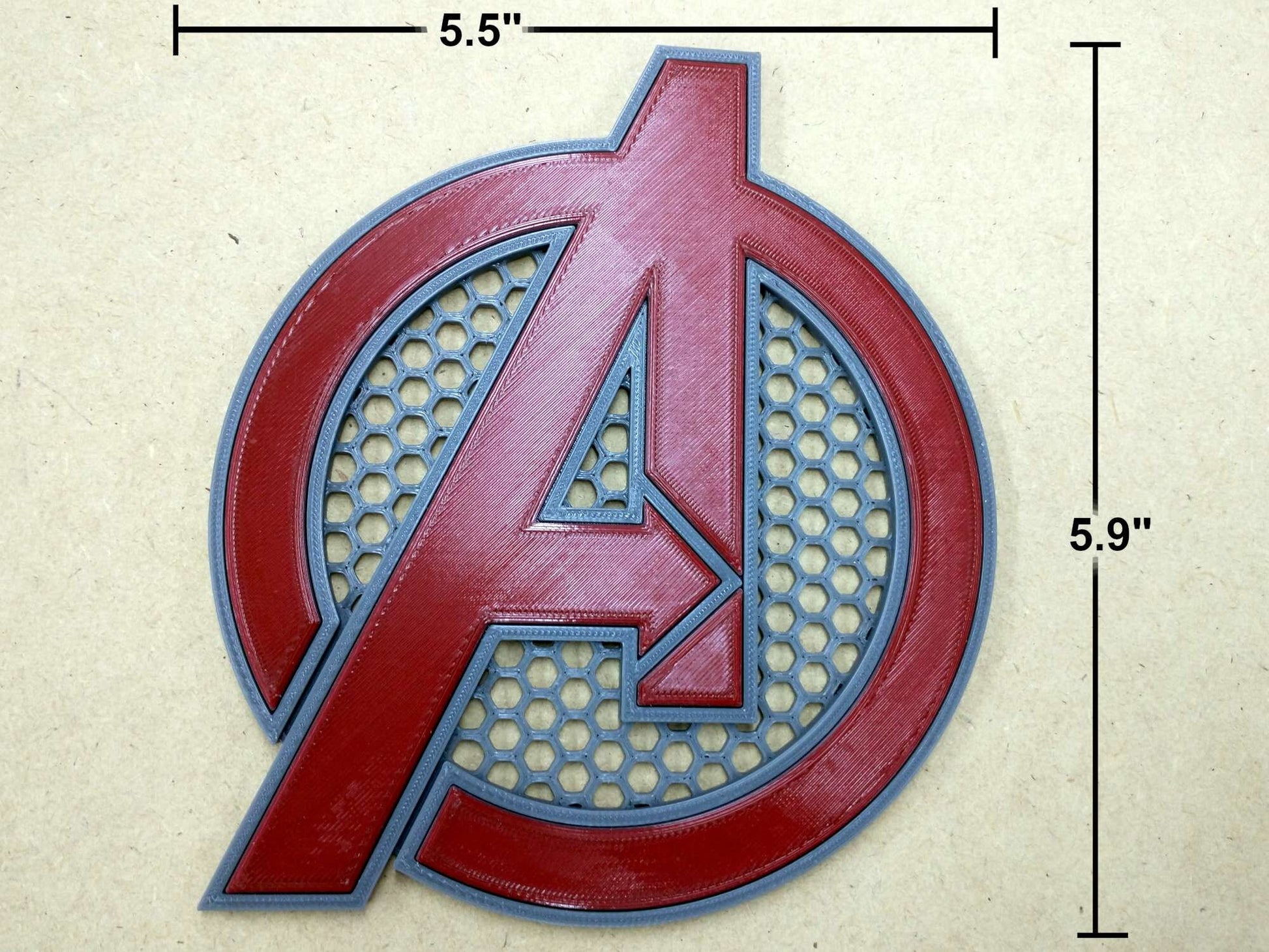 Avengers Emblem badge. Printed in grey with red. Very nice to hang by desk or in room. Show off your passion.