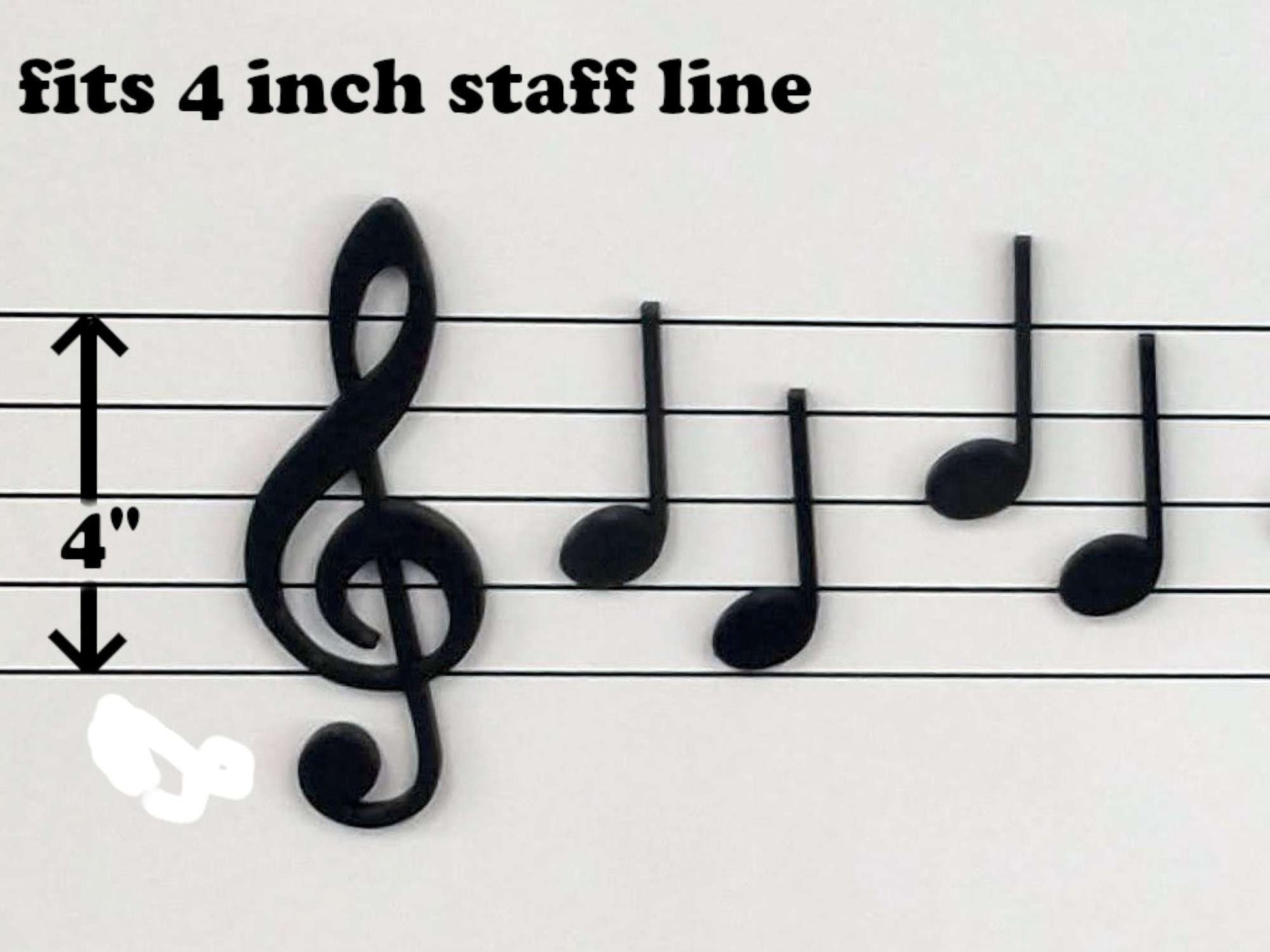 Here is a collection of 3D printed notes for use on a 4" staff white board. The boards that are found in school classrooms. Easier than drawing the notes, when all you have to do is place the notes on the desired place. The notes are between 5/16 and 1/2 an inch thick. Makes it easy to grab and move around the board. Also the dots can be added to any note, they are not attached to any particular note. This makes it easier to use. All the notes have strong magnets in the backs.
