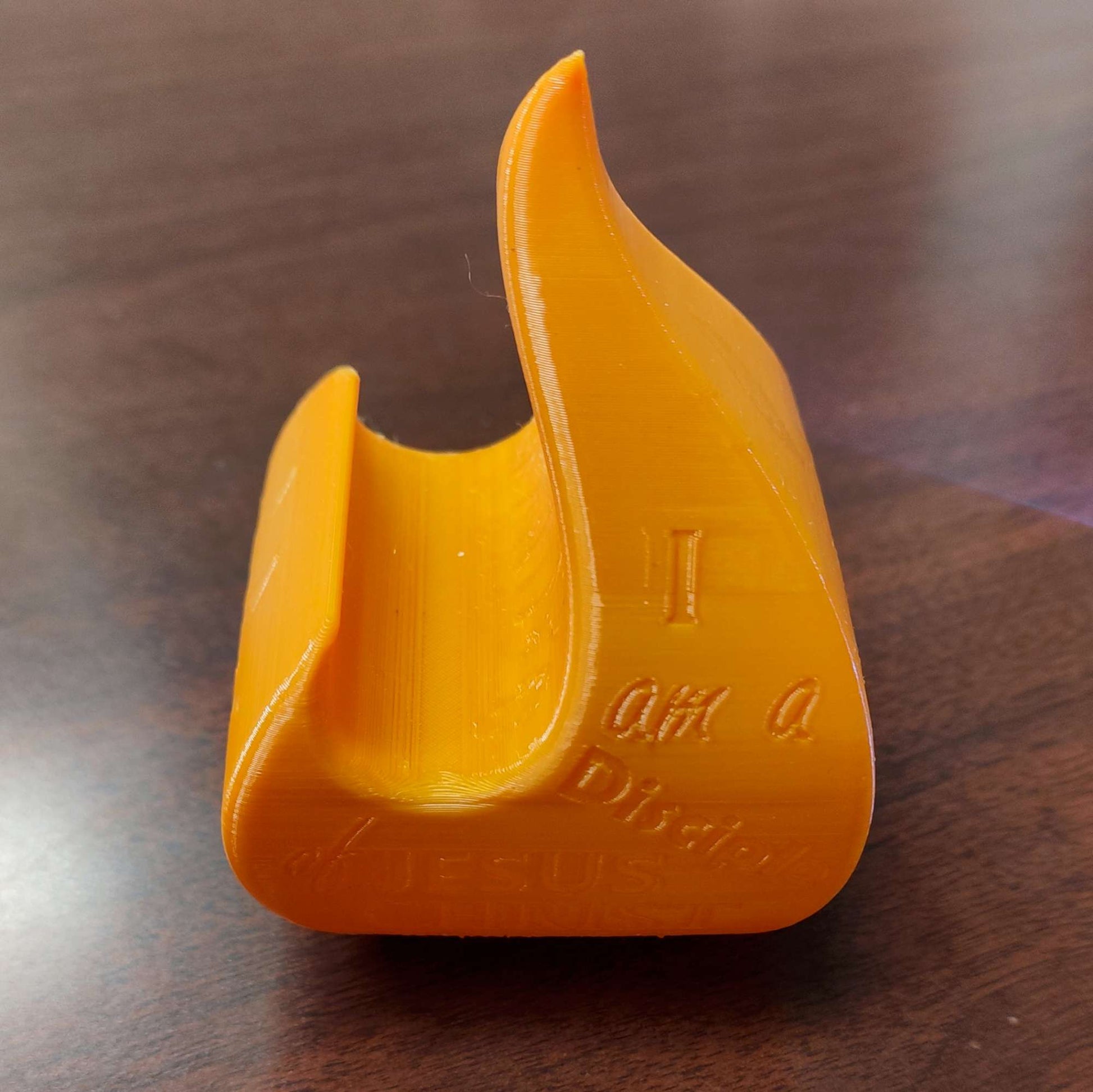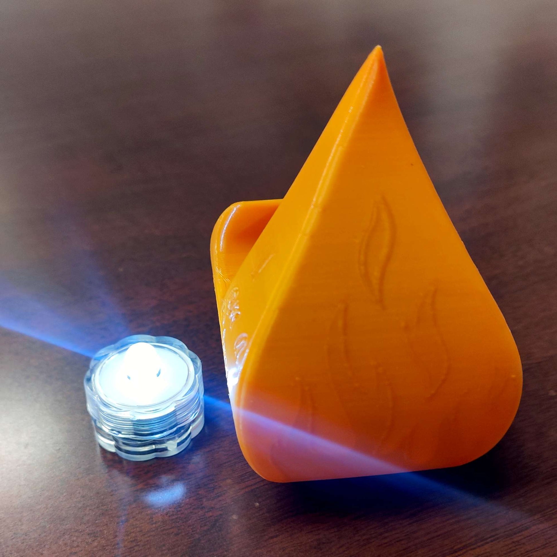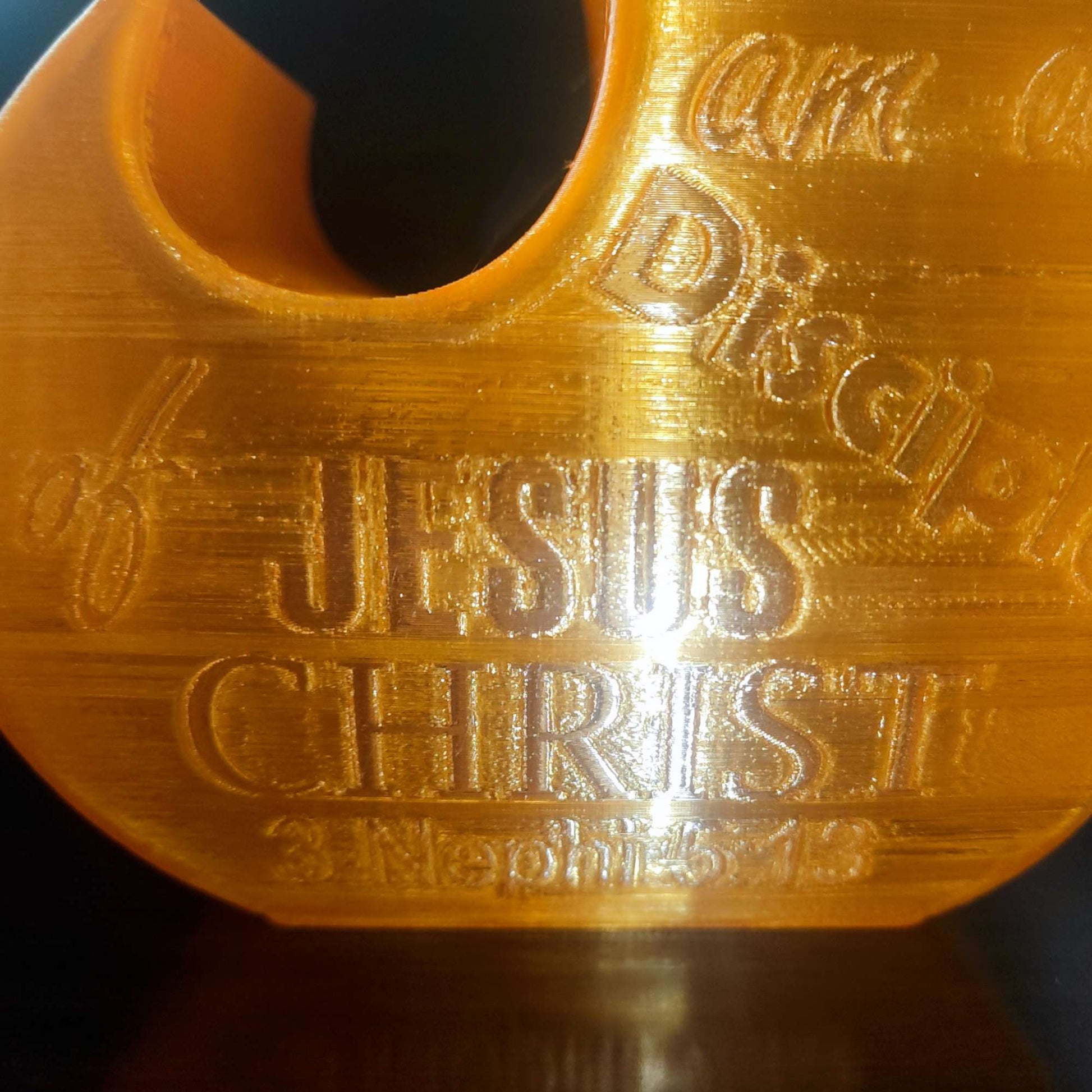 I created a flame that is hollow for a small tea light to fit inside. It glows showing flames and the inscription "I am a Disciple of Jesus Christ"